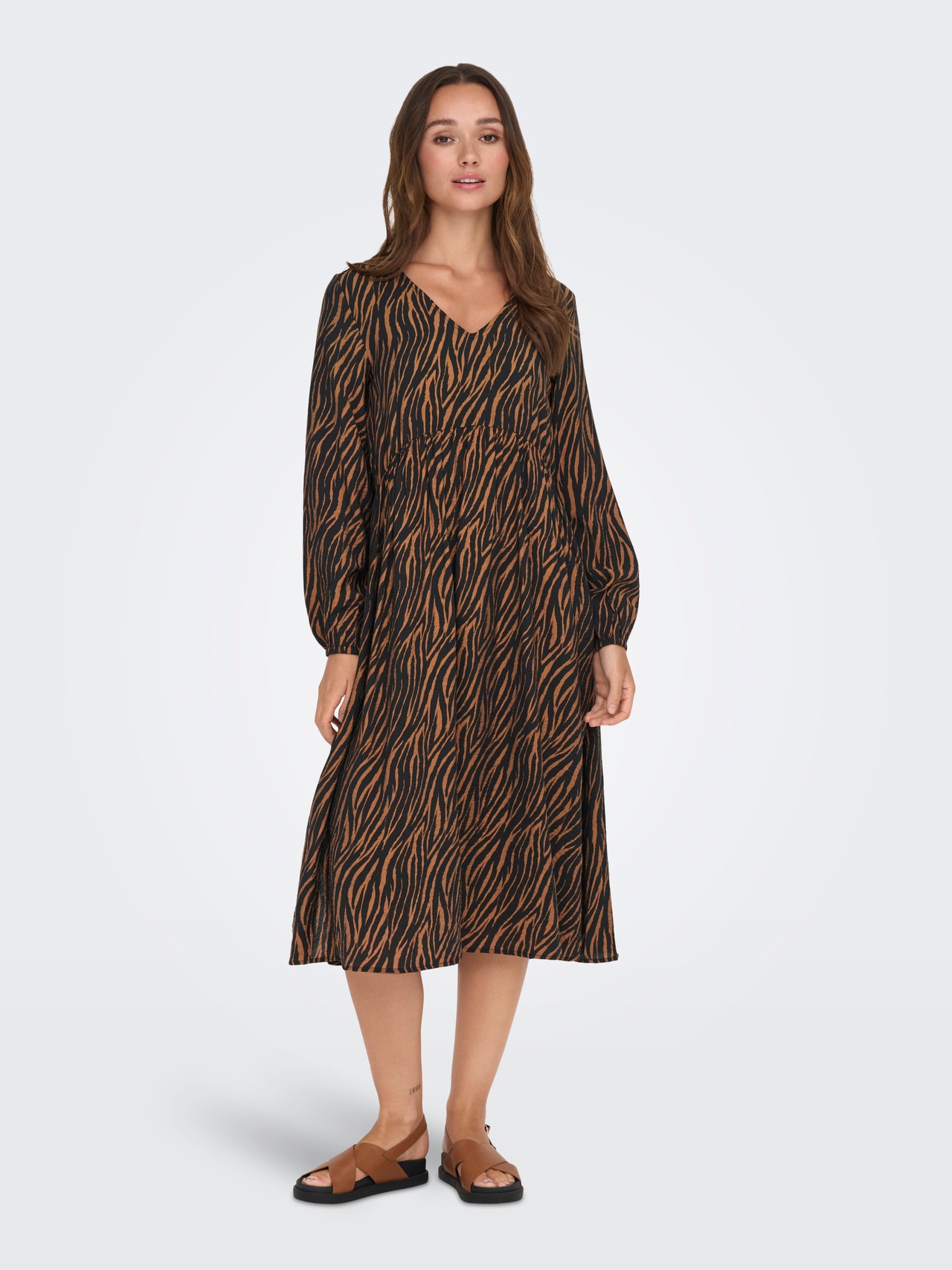 Shop Textured V Neck Midi Dress With Volume Sleeves And Side Slit Online Max Bahrain